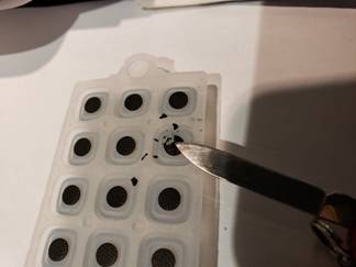 I found that easiest to do if I first cut the pill into 4 pieces (like you would a pizza) then removed each of those quarter pieces (the least resistance seemed to be when pushing the quarter pieces out from the center rather than lifting them). Some came easier than others.