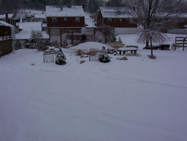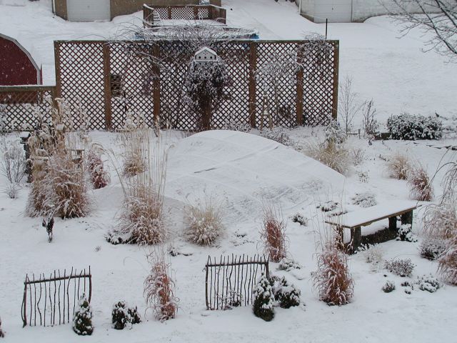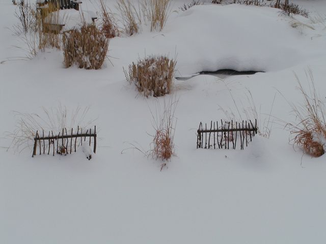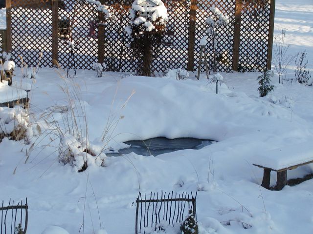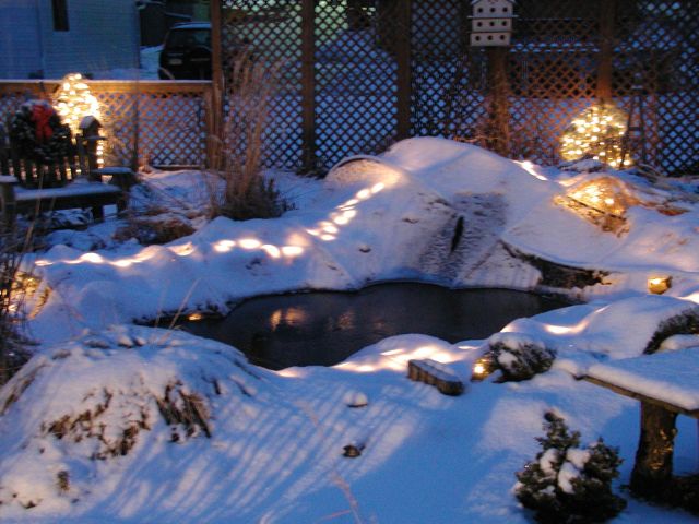 The fish all hybernate on the bottom of the pond all Winter. They miss all of this Winter excitement.